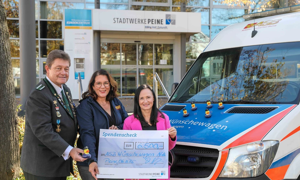 Stadtwerke Peine spenden 6.500-Euro Erlös der Kult-Ente an den ASB-Wünschewagen Niedersachsen